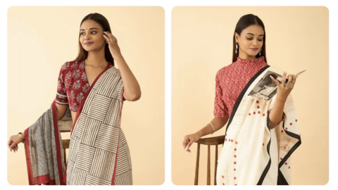 5 ลุคแฟชั่นส่าหรีชีฟองแมตช์ผ้าฝ้ายผสมแคชเมียร์สุดหรู