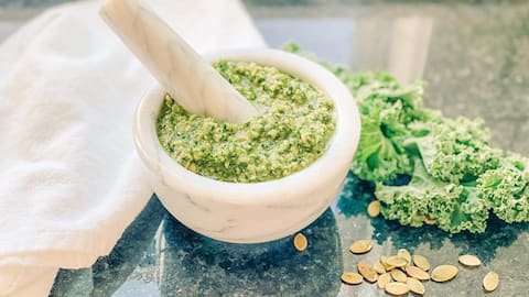 เริ่มต้นด้วยการคั่วเมล็ดฟักทองจนหอม จากนั้นนำไปปั่นรวมกับกระเทียม พาร์เมซาน น้ำมันมะกอก และพริกไทยดำ ปรุงรสด้วยเกลือเล็กน้อยจนได้เนื้อสัมผัสที่เนียนละเอียด สามารถเก็บไว้ในตู้เย็นได้นานหลายวัน เหมาะสำหรับใช้เป็นซอสหรือเครื่องเคียงในเมนูต่างๆ