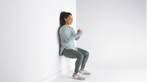 เริ่มต้นด้วยการยืนห่างจากผนังประมาณหนึ่งฟุต จากนั้นเลื่อนตัวลงจนกระทั่งเข่าของคุณอยู่ในตำแหน่ง 90 องศา โดยให้หลังแนบกับผนัง ค้างไว้ในตำแหน่งนี้ประมาณ 30 วินาทีถึงหนึ่งนาที ขึ้นอยู่กับระดับความแข็งแรงของคุณ ทำซ้ำหลายครั้งเพื่อเพิ่มประสิทธิภาพ