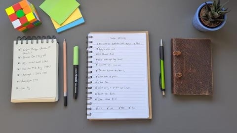สมุดโน้ตพกพาสามารถใช้เป็นเครื่องมือในการจัดตารางเวลาได้อย่างดี เขียนตารางเวลาที่ชัดเจนสำหรับกิจกรรมต่างๆ ในแต่ละวัน รวมถึงเวลาพักผ่อน วิธีนี้จะช่วยให้คุณบริหารจัดการเวลาได้ดีขึ้น และลดโอกาสที่จะรู้สึกเหนื่อยล้าเกินไปจากภาระงาน