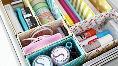 หลังจากเตรียมกล่องเสร็จแล้ว นำไปใส่ภายในลิ้นชักตามความต้องการ สามารถแบ่งช่องสำหรับเก็บของต่างๆ เช่น เครื่องเขียน เครื่องสำอาง หรืออุปกรณ์ในครัว ทำให้ค้นหาของได้ง่ายขึ้น และช่วยเพิ่มพื้นที่ในการจัดเก็บอย่างมีประสิทธิภาพ