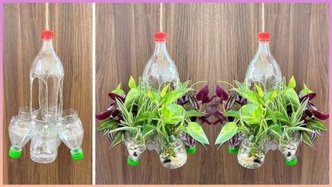 กระถางต้นไม้จากขวดครัวเก่าในงบประหยัด