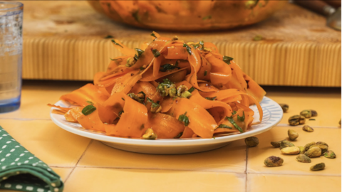 สลัดแครอทกรอบกับน้ำสลัดหอมหมู่น้ำมันถั่วลิสง