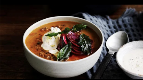 ซุปถั่วเลนทิลหอมสดชื่นด้วยใบสะระแหน่