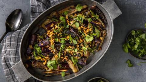 สลัดมะเขือยาวย่างกับถั่วลิสง เมนูมังสวิรัติรสจัดจ้าน