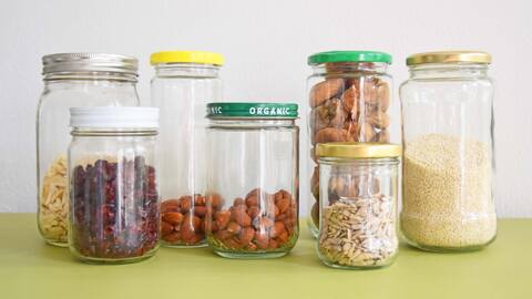 ขวดโหลแก้วหรือพลาสติกที่มีฝาปิดแน่นหนาสามารถนำมาใช้เก็บเครื่องปรุงต่างๆ เช่น เกลือ น้ำตาล หรือสมุนไพรแห้งได้ดี การใส่ฉลากบนขวดจะช่วยให้คุณหาเครื่องปรุงที่ต้องการได้ง่ายขึ้น และยังทำให้ครัวดูเป็นระเบียบมากขึ้นอีกด้วย