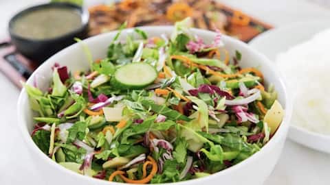 สลัดถั่วลิสงตะไคร้หอมผสมใบโหระพา