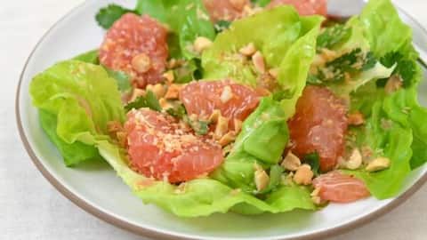 สลัดส้มโอขนุนกับมะพร้าวคั่ว: เมนูมังสวิรัติทำง่าย สดชื่นทุกคำ