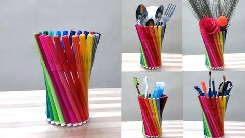 หลอดปากกาที่ว่างเปล่าสามารถนำมาใช้เป็นที่เก็บเครื่องเขียนเล็กๆ เช่น ดินสอ ยางลบ หรือปากกาได้ เพียงแค่ตกแต่งหลอดตามใจชอบ แล้วใส่เครื่องเขียนลงไป จะช่วยให้โต๊ะทำงานดูสะอาดและมีระเบียบมากขึ้น