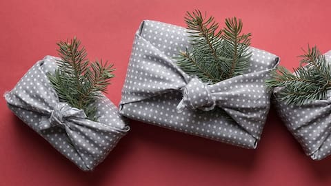 ผ้าพันคอเก่าที่ไม่ได้ใช้งานแล้วสามารถนำมาใช้แทนกระดาษห่อได้อย่างดี เพียงแค่พันรอบกล่องหรือสิ่งของที่ต้องการห่อ วิธีนี้จะทำให้ผู้รับรู้สึกถึงความอบอุ่นและใส่ใจ และหลังจากเปิดของขวัญ ผู้รับยังสามารถนำไปใช้งานต่อได้อีกด้วย