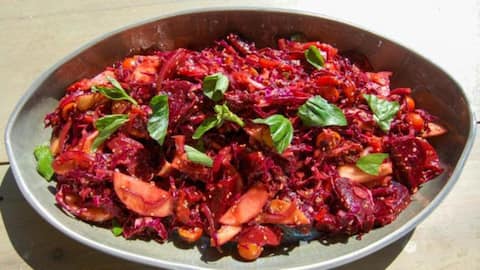 สลัดกะหล่ำปลีแดงกับน้ำสลัดน้ำมะขาม