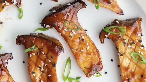 เมนูเห็ดออรินจิย่างรมควันกับน้ำจิ้มกระเทียมมะนาว
