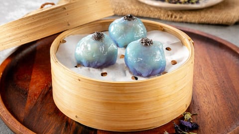 เกี๊ยวแมงดาทะเลน้อยนึ่งกับดอกอัญชัน เมนูสีสันสดใสที่ต้องลอง