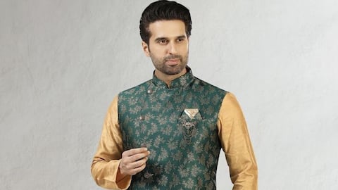 กางเกงชิโน่สีเบจเป็นอีกหนึ่งทางเลือกสำหรับผู้ชายในการจับคู่กับแจ็คเก็ตพื้นเมือง สีเบจจะช่วยลดทอนความเข้มของสีในชุด ทำให้ภาพรวมดูสมูธและกลมกลืน เหมาะสำหรับการออกไปพบปะเพื่อนฝูงหรือเดินเล่นในวันหยุด