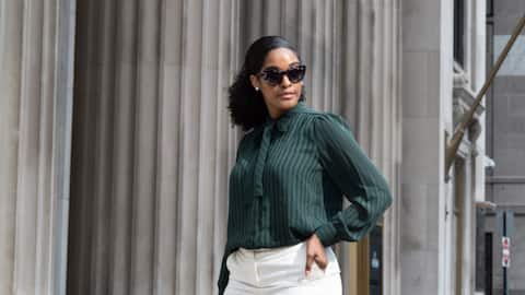 ลายทางแนวตั้งบนเสื้อสเวตเตอร์แขนพองสามารถช่วยเพิ่มความสูงและทำให้รูปร่างดูเพรียวขึ้น จับคู่กับกางเกงทรงเทเปอร์สีเข้มเพื่อสร้างสมดุลระหว่างส่วนบนและส่วนล่างของร่างกาย ลุคนี้เหมาะสำหรับการออกไปทำงานหรือพบปะเพื่อนฝูง