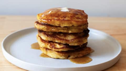 แพนเค้กข้าวโพดหวานกับซอสพริกไทย