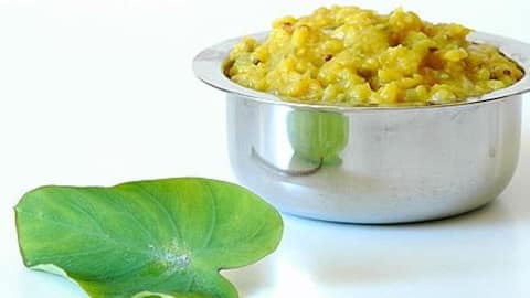 เริ่มต้นด้วยการล้างถั่วดาลให้สะอาด จากนั้นนำไปต้มจนสุก ใส่เครื่องแกงลงไปผัดจนหอม แล้วเติมน้ำซุปตามต้องการ ใส่ใบเผือกลงไปต้มจนเนื้อนุ่ม ปรุงรสด้วยเกลือและน้ำตาลเล็กน้อย เคี่ยวต่อจนทุกอย่างเข้ากันดี เสิร์ฟพร้อมข้าวสวยหรือข้าวกล้องเพื่อเพิ่มความอิ่มเอิบใจ