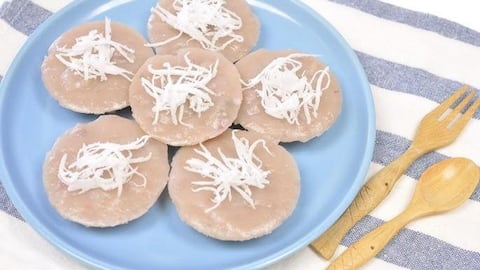 เมนูหวานแบบไทย: ขนมเค้กเผือกนึ่งหน้ากะทิ