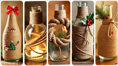 เริ่มจากพันเชือกรอบๆ ขวดแก้ว โดยเริ่มจากด้านล่างขึ้นไปด้านบน ใช้กาวร้อนหรือกาวสองหน้าช่วยยึดติดหากจำเป็น พยายามพันให้แน่นพอที่จะไม่หลุดง่าย แต่ก็ไม่ควรแน่นจนเกินไป เพื่อรักษารูปลักษณ์ธรรมชาติของเชือก เมื่อเสร็จแล้ว สามารถตกแต่งเพิ่มเติมด้วยลูกไม้หรือวัสดุต่างๆ ตามใจชอบ