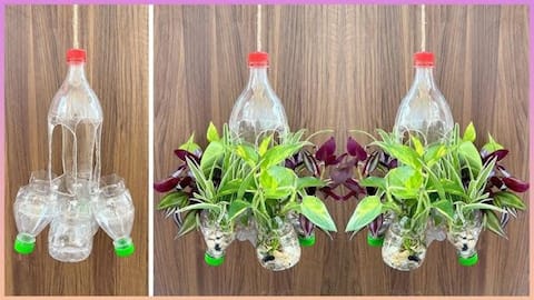 เปลี่ยนขวดพลาสติกเป็นกระถางแขวนสุดเก๋ ประหยัดงบ
