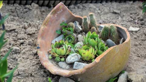 เปลี่ยนเศษกระถางดินเผาแตกเป็นวัสดุระบายน้ำในกระถางสวน