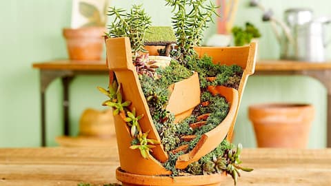 ส่วนที่เหลือจากกระถางใหญ่สามารถเปลี่ยนเป็นบ้านใหม่สำหรับพืชเล็กๆ ได้ เช่น ไม้อวบน้ำหรือไม้ฟอกอากาศ เพียงแค่เติมดินปลูกลงไปแล้วปลูกต้นไม้ ก็จะได้ของตกแต่งบ้านใหม่ ที่ทั้งสดชื่นและมีชีวิตชีวา