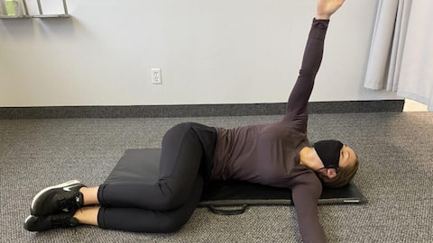 นั่งไขว่ห้างบนเก้าอี้โดยให้หลังตรง ยกแขนทั้งสองข้างขึ้นเหนือศีรษะ จากนั้นค่อยๆ เอียงตัวไปทางด้านข้างหนึ่ง พร้อมกับหายใจเข้าลึกๆ และปล่อยออกช้าๆ ทำซ้ำกับอีกด้านหนึ่ง วิธีนี้ช่วยเพิ่มความยืดหยุ่นของกล้ามเนื้อด้านข้างและเปิดทรวงอกได้ดี