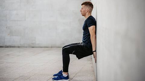 เริ่มต้นด้วยการยืนหันหลังให้ผนัง โดยให้เท้าห่างจากผนังประมาณหนึ่งฟุต จากนั้นค่อยๆ เลื่อนตัวลงจนกระทั่งเข่าอยู่ในมุม 90 องศา รักษาตำแหน่งนี้ไว้ประมาณ 30 วินาทีถึงหนึ่งนาที ท่านี้จะช่วยเสริมสร้างกล้ามเนื้อขาและเพิ่มความมั่นคงในการทรงตัว